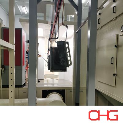 Покрытые части отверждаются при температуре 200 °C в течение 18 минут, что позволяет порошковому покрытию полностью скрещиваться и затвердевать.